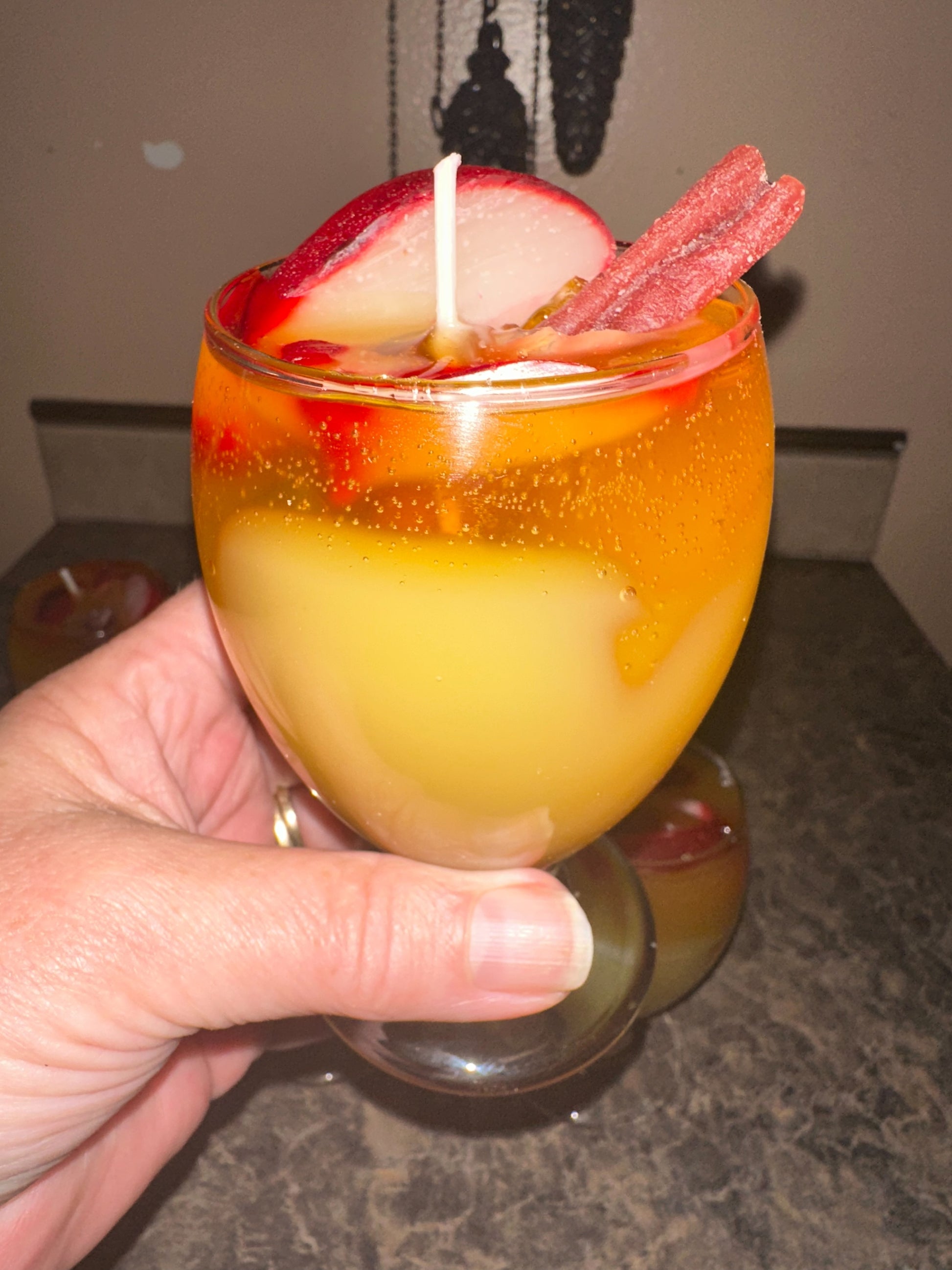 Unwind with the soothing scent of the Apple Cider Cocktail gel candle. Filled with a fragrant blend of apples and spices, this gel candle provides an inviting atmosphere for any space. Each candle is long-lasting and highly fragrant, giving you all the benefits of any traditional candle. Apples are hand painted for a more realistic apple slice look.