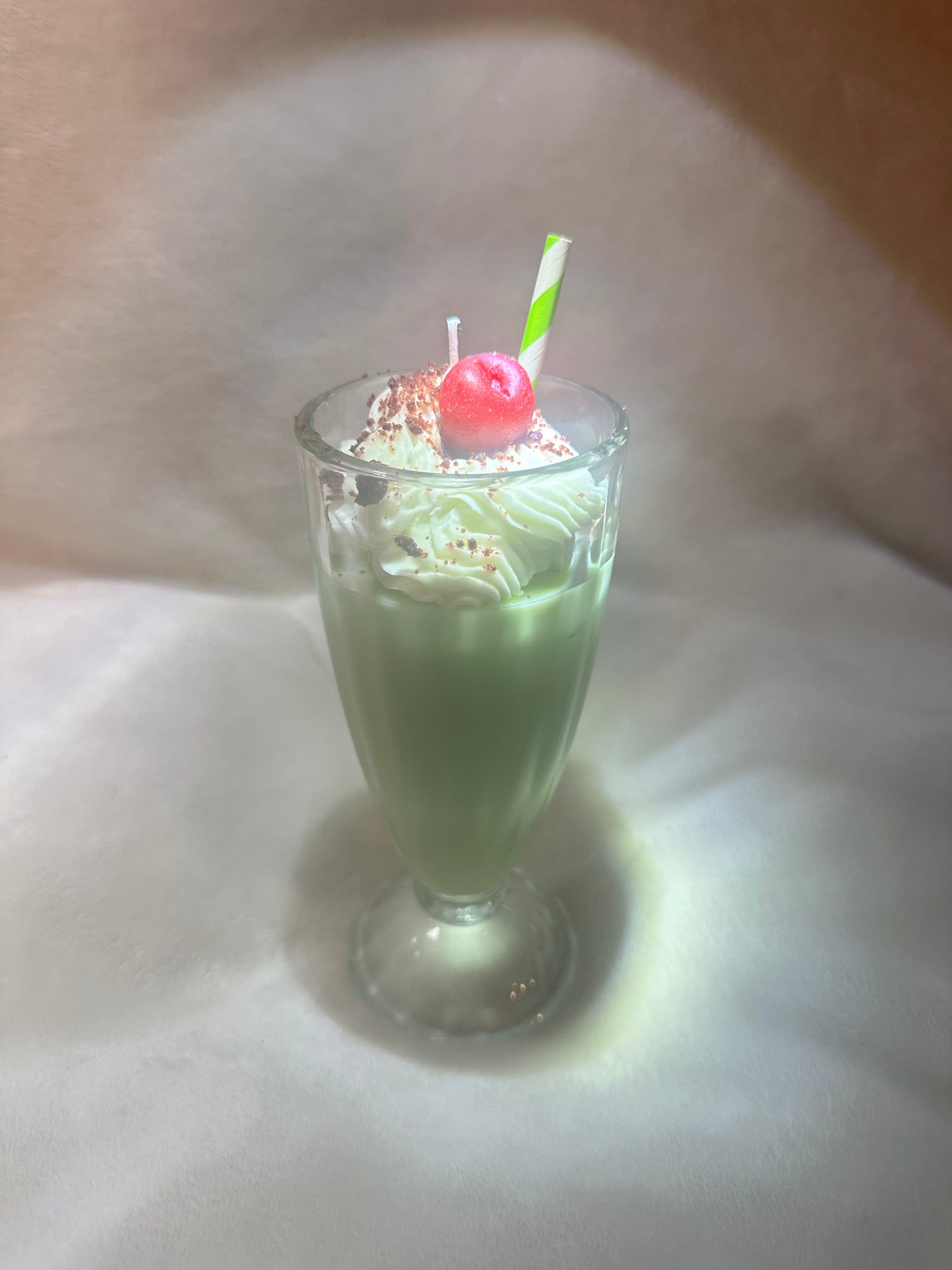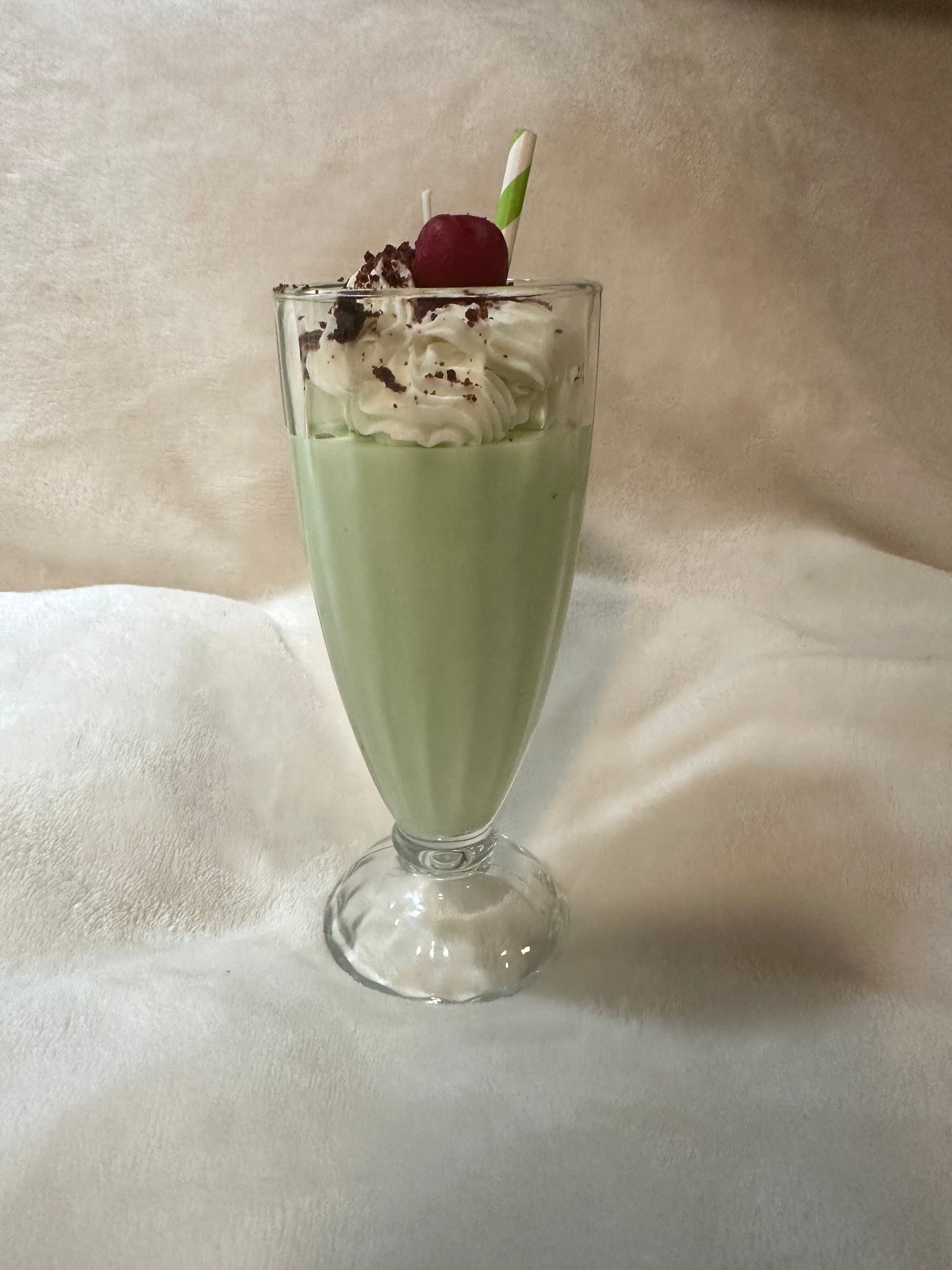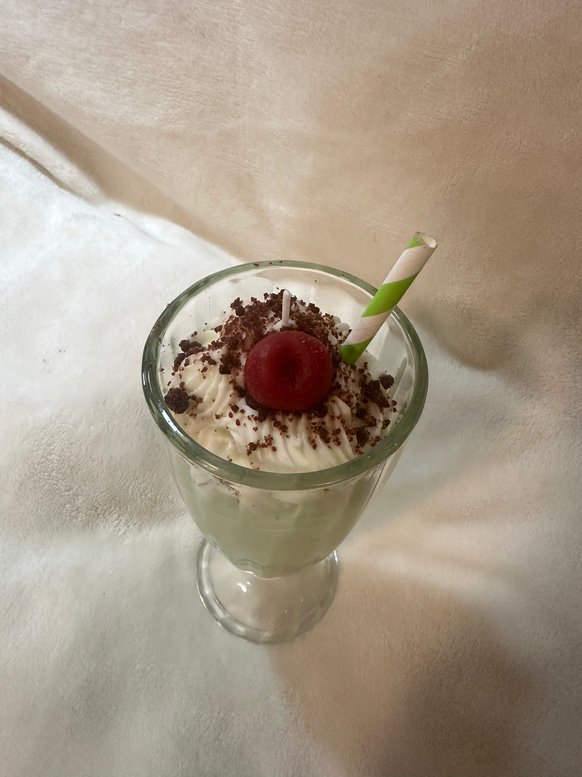 14 ounce mint chocolate shake candle made with all natural soy wax. Burn time is approximately 30 to 40 hours.