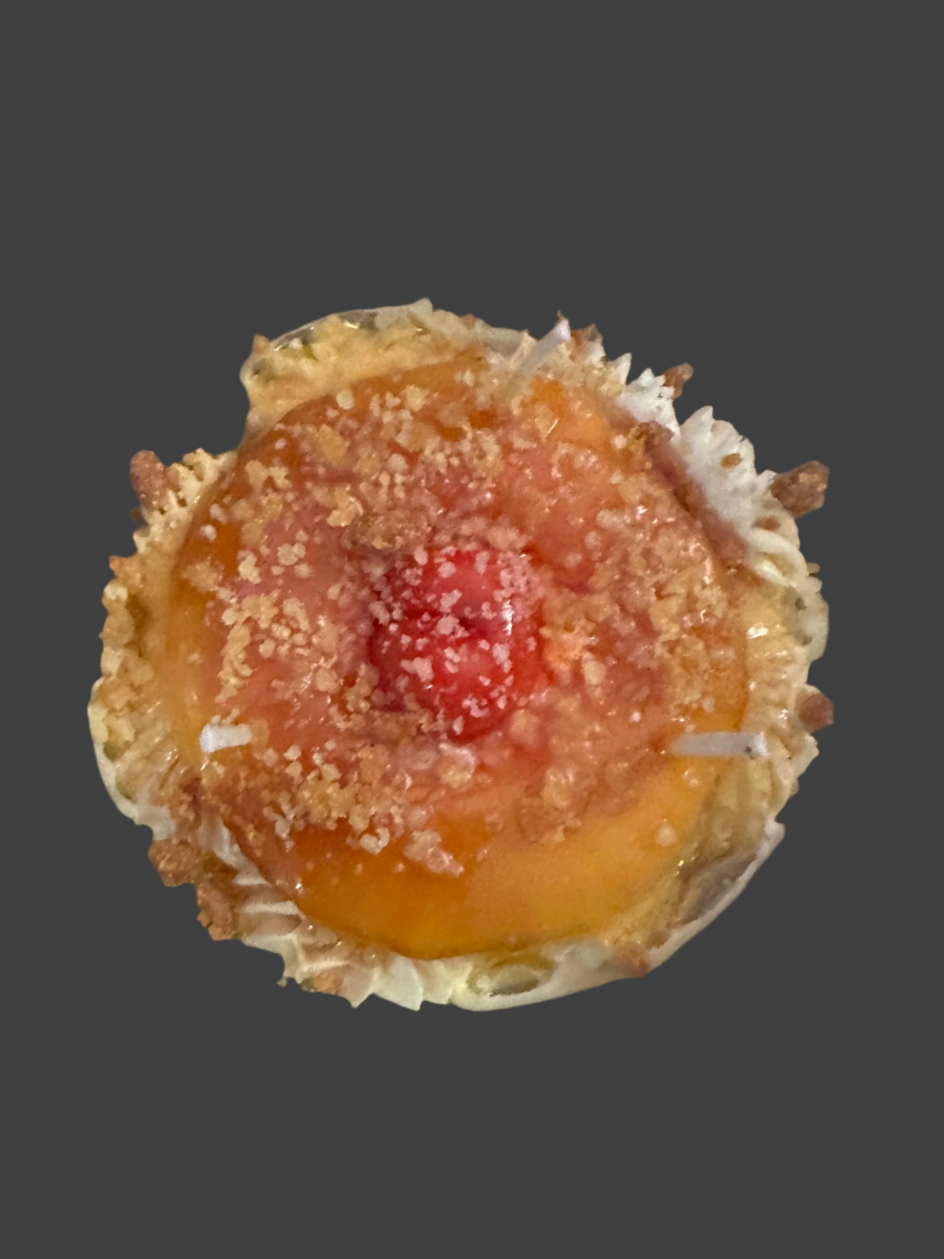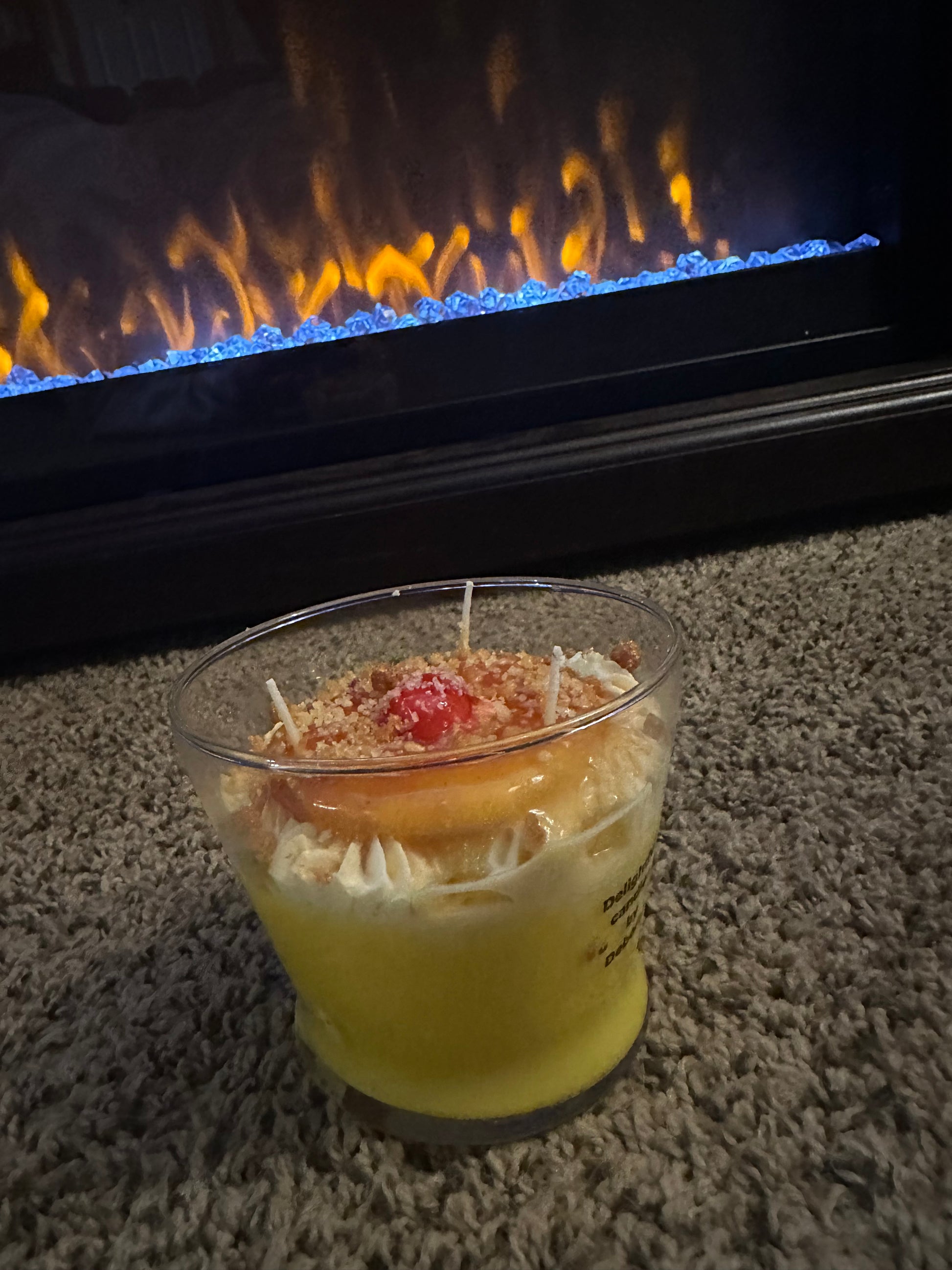 18 ounce pineapple scented soy candle with a touch of cherry scent. Approximately 50-60 hours of burn time