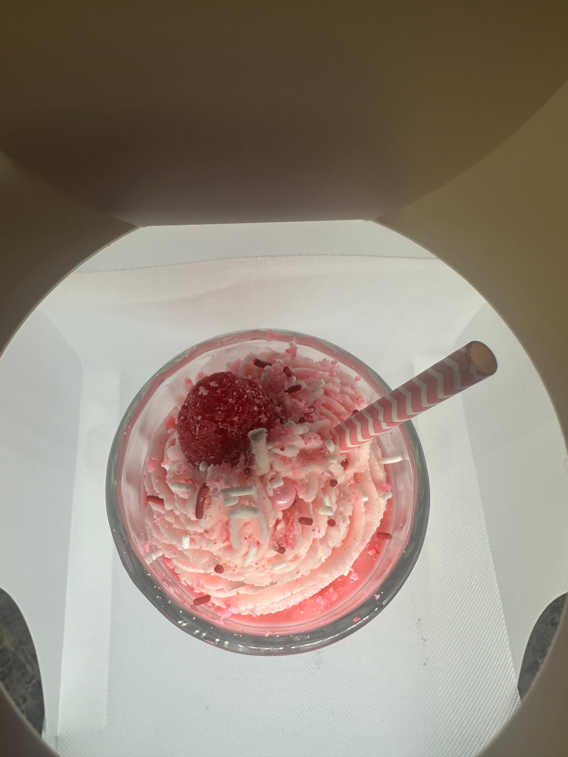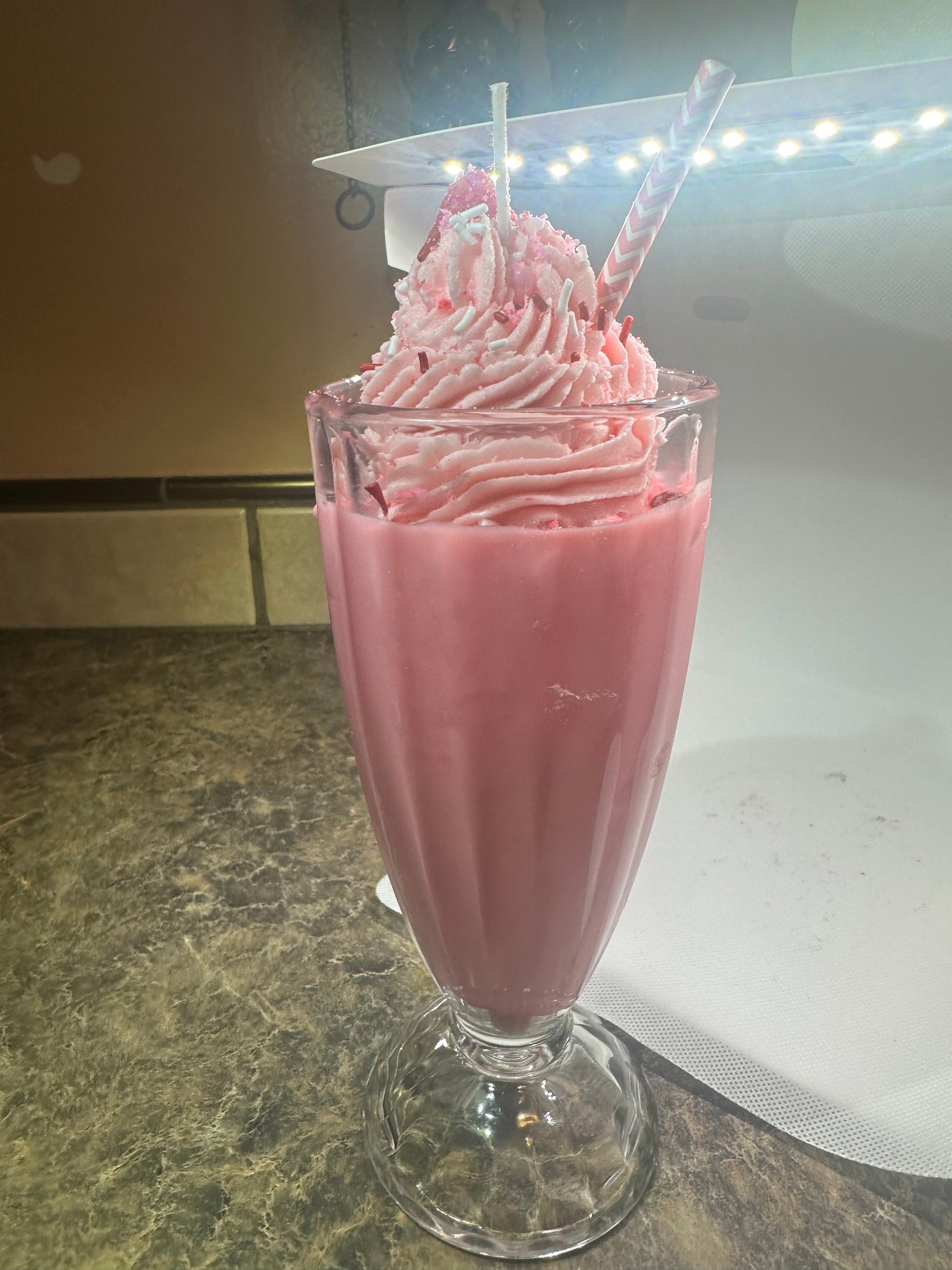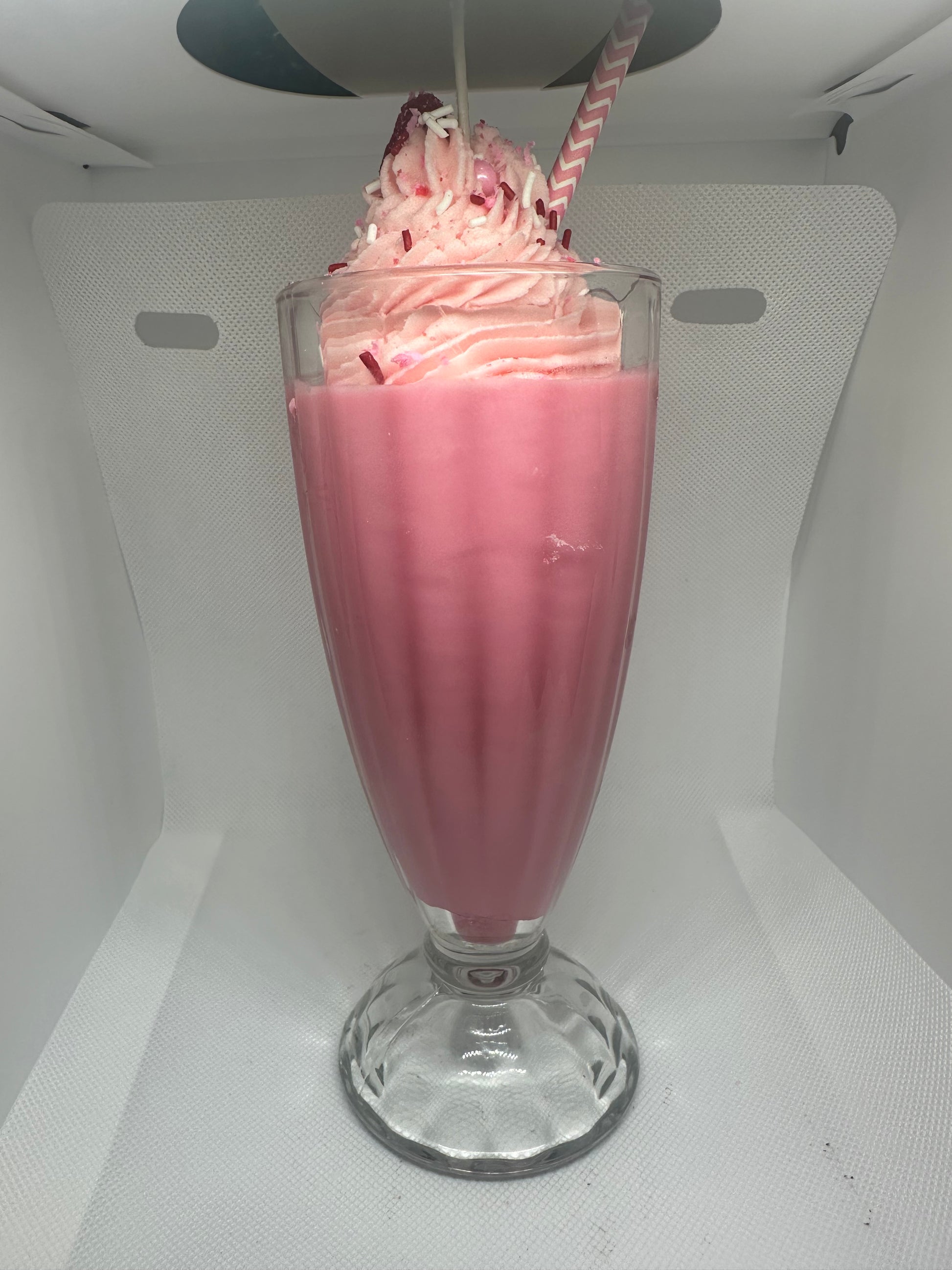 This 16-ounce strawberry scented soy milkshake candle is the perfect addition to your home. Immerse yourself in the delightful scent of fresh strawberries while enjoying the warm, flickering light of this eco-friendly candle. Indulge in the benefits of a natural soy-based product while creating a cozy and inviting atmosphere in any room. Approximate burn time is about 30-40 hours.